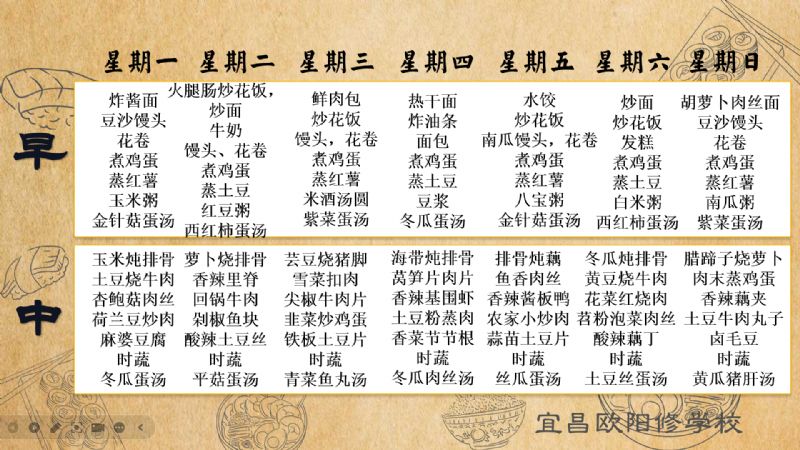 宜昌歐陽修學(xué)校每周食譜(5月19日至5月25日)