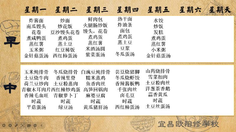宜昌歐陽修學(xué)校每周食譜(6月2日至6月8日)