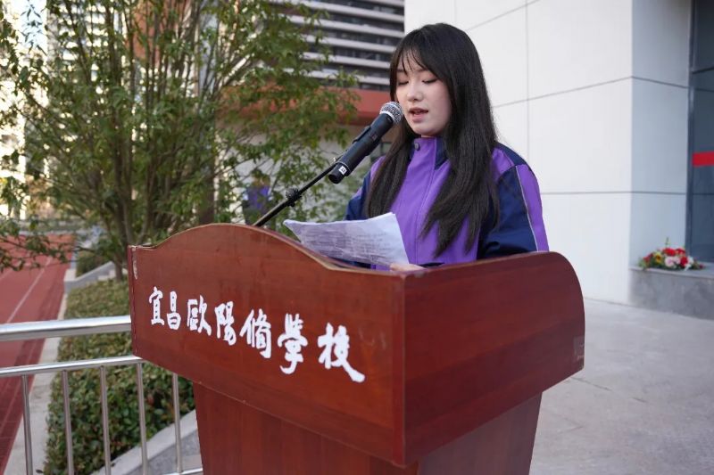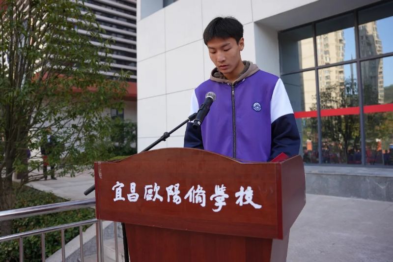 運動員代表303班曾昱文神情堅毅地發(fā)表感言并宣誓,承諾將嚴格遵守比賽規(guī)則,尊重對手、尊重裁判、尊重觀眾,以飽滿的熱情、昂揚的斗志全力以赴,賽出風格、賽出水平,展現(xiàn)歐陽修學子的良好風貌。