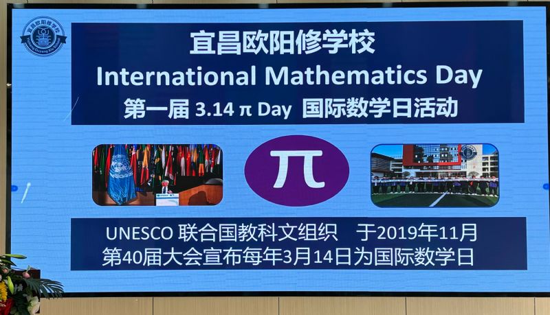 UNESCO 聯(lián)合國教科文組織 于2019年11月第40屆大會宣布每年3月14日為“International Mathematics Day 國際數(shù)學(xué)日”。 2024年3月14日是第五個“國際數(shù)學(xué)日”即圓周率日(π=3.1415926),下午15點(diǎn)9分26秒,宜昌歐陽修學(xué)校國際部舉辦了首屆國際數(shù)學(xué)日活動。