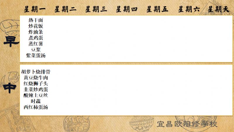 宜昌歐陽修學(xué)校每周食譜(9月29日-10月6日)