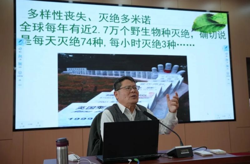 在“生態(tài)”篇章,郭耕研究員從“生態(tài)(Ecology)”詞源切入,強(qiáng)調(diào)地球是人類和150萬(wàn)種動(dòng)植物共有的家園。他從時(shí)空雙維度解讀生態(tài)保護(hù)重要性,還分享了中國(guó)生態(tài)保護(hù)成果,如首個(gè)自然保護(hù)區(qū)建立、五大國(guó)家公園落地等,同時(shí)警示當(dāng)前生態(tài)危機(jī),呼吁以“厚德載物”理念約束行為。